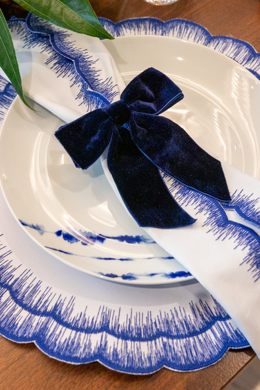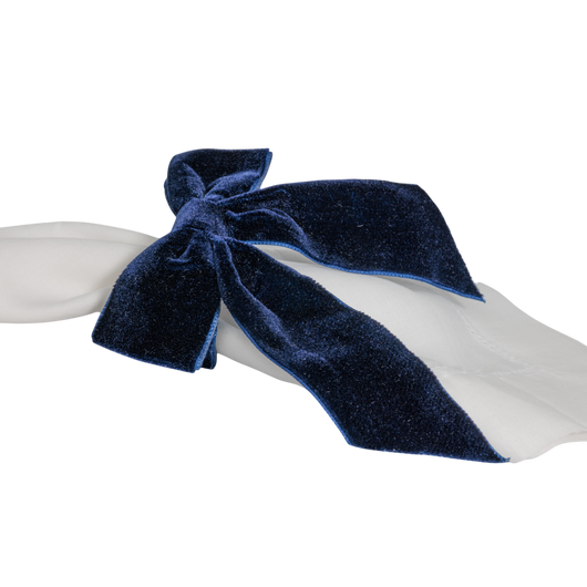 Add a touch of timeless sophistication to your table with this deep blue velvet bow napkin ring. Soft to the touch and visually striking, it brings a sense of luxury and refinement to any dining occasion.