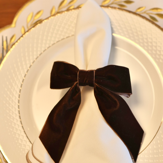 Brown Velvet Bow Napkin Rings (Set of 2)