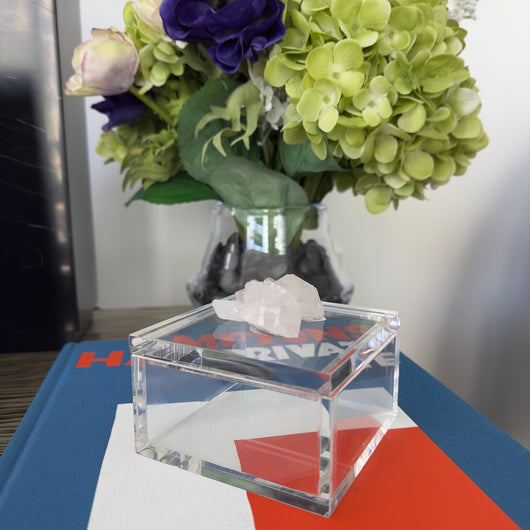 A natural crystal displayed on a sleek acrylic box — a symbol of clarity and positive energy. An elegant accent and always a thoughtful gift, bringing good energy and refined taste to any space.