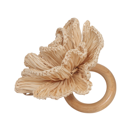 A delicate and elegant piece, this napkin ring features a beautifully handwoven Buriti palm flower, paired with a matching natural fiber ring. Lightweight yet striking, it brings artisanal charm and organic sophistication to your table.