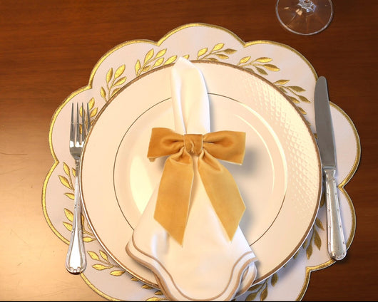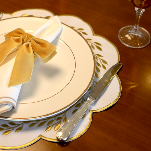 Classic and radiant — the Golden Placemats brings a luminous touch to your table with delicate embroidery in shimmering gold tones and scalloped edges that evoke timeless sophistication.