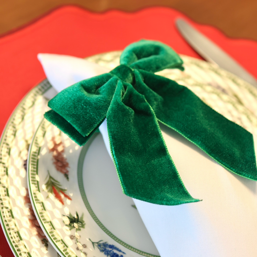 Add a touch of timeless sophistication to your table with this green velvet bow napkin ring. Soft to the touch and visually striking, it brings a sense of luxury and refinement to any dining occasion.