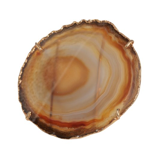Add a warm, earthy elegance to your table with our Orange Agate Napkin Ring. Handcrafted from natural agate, each piece showcases unique caramel and amber-toned banding, framed in a delicate gold edge. A striking balance between organic beauty and refined design, perfect for elevating any dining experience.