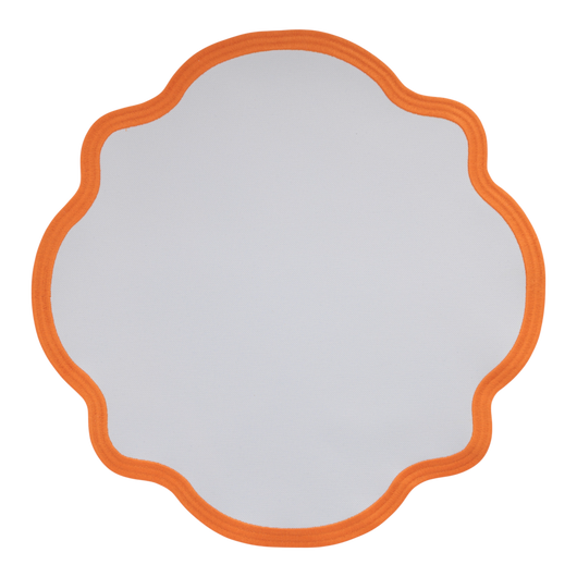 Inspired by golden-hour glow, this placemat adds warmth and brightness with its vivid orange border and graceful curves.