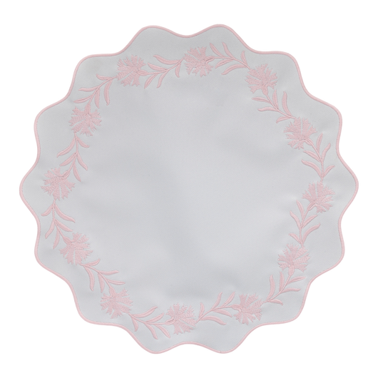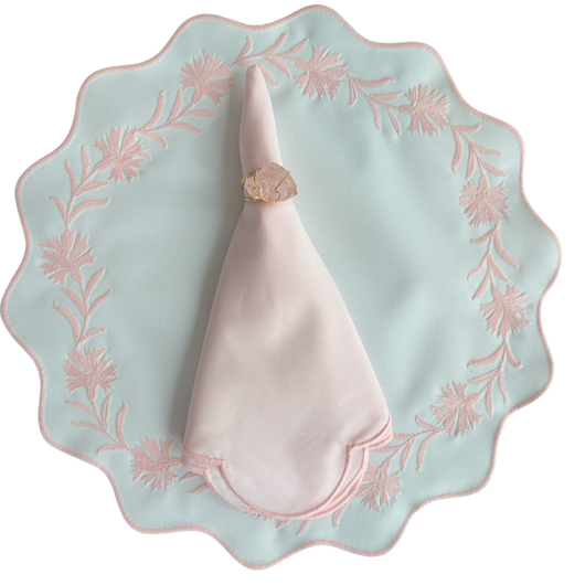 Embroidered pale pink florals bloom delicately across this pastel placemat. Romantic and graceful, it’s a floral dream for spring and summer gatherings.