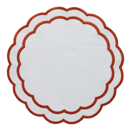 Inspired by golden-hour glow, this placemat adds warmth and brightness with its vivid orange border and graceful curves.