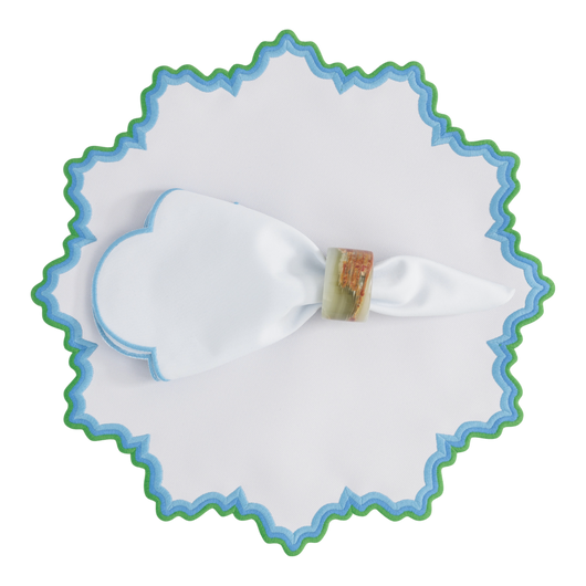 Inspired by the movement of ocean waves and fresh green tones, this scalloped placemat blends calm and vitality for a breezy, elegant setting.